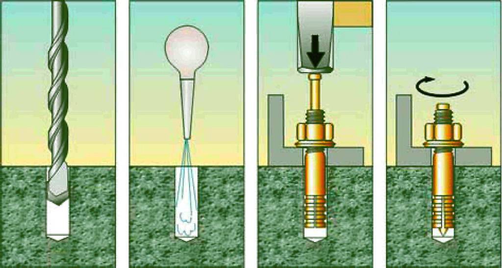 Правила монтажа анкеров зависят от вышеперечисленных разновидностей крепежей.