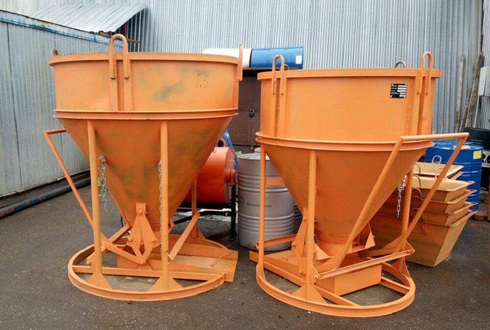 Бадьей для бетона пользуются для разгрузки и заливки смесей. Изделия классифицируют в зависимости от объема (от 0,5 м3), грузоподъемности и формы. Все характеристики должны быть прописаны в паспорте или другой документации, которая выдается при покупке приспособления. На рынке стройматериалов представлены два вида таких изделий: