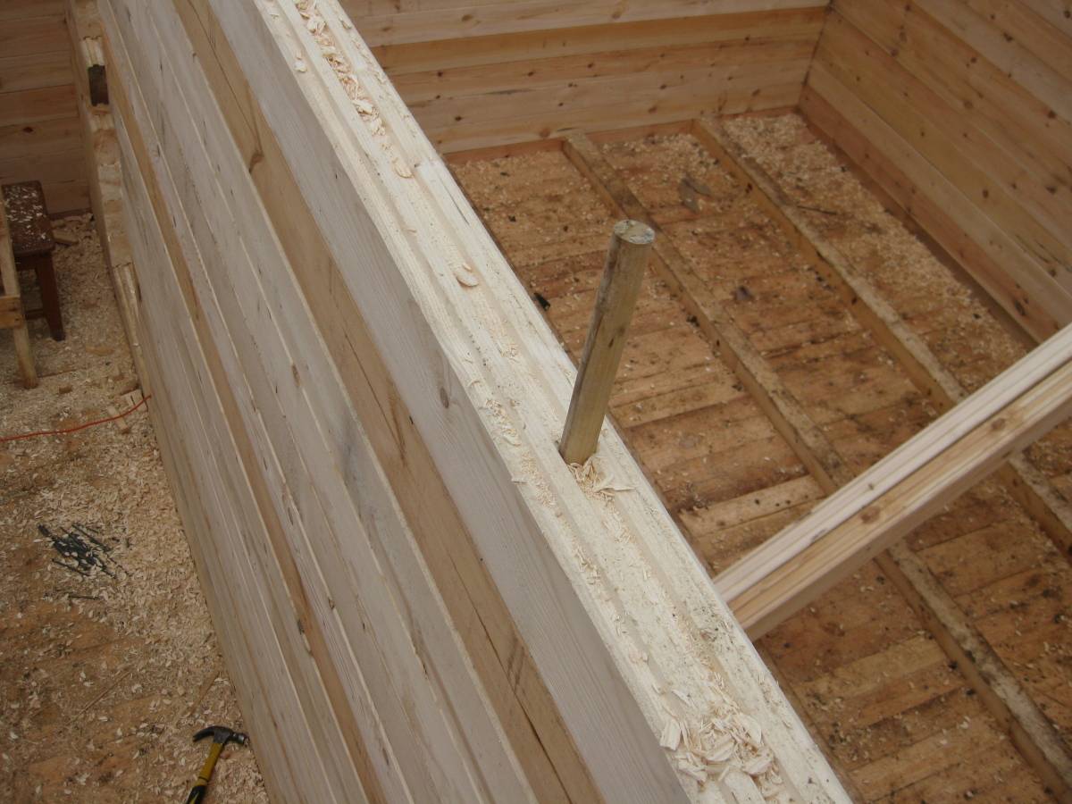Также не рекомендуют использовать и куски арматуры, пружинные узлы и вообще, любой металл. Древесина проводит пар, и на металле он будет конденсироваться со всеми вытекающими отсюда последствиями (быстрое окисление и разрушение металла, а на ржавом металле древесина очень хорошо «зависает», еще одна болезнь — размножение грибков во влажной среде). Так что если решили собирать деревянный сруб, его собирают на деревянный крепеж.