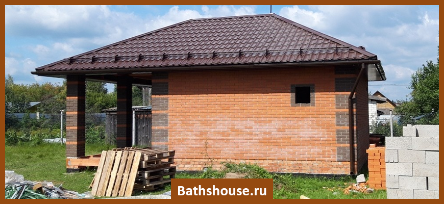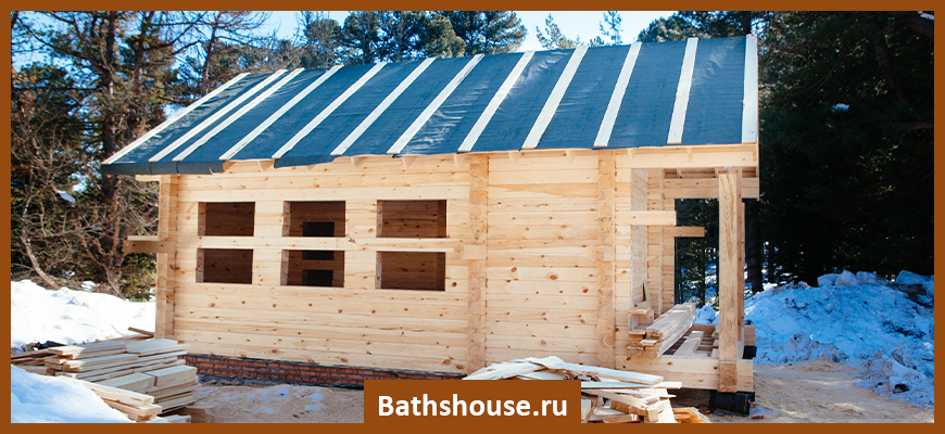 Такие строения предполагают наличие внутренней и внешней отделки, утепление и гидроизоляцию. Иногда в комнате отдыха и душевой делают тёплый пол и выкладывают покрытие кафелем. Печь можно сделать кирпичную, либо купить металлическую, которая топится дровами или работает от электричества. Кровлю для такого здания делают из металлочерепицы. Фундамент может быть разного типа, в зависимости от грунта, условий и нагрузки.