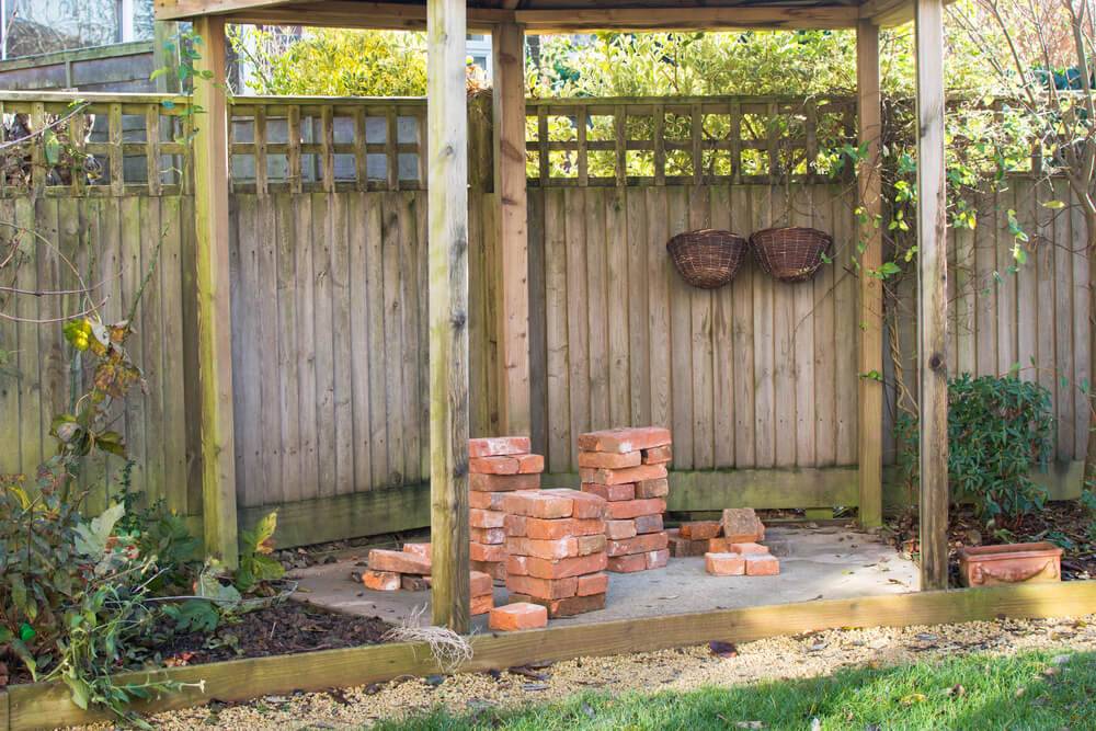 Чтобы продлить срок службы деревянной беседки, конструкцию часто размещают на кирпичных или каменных столбах