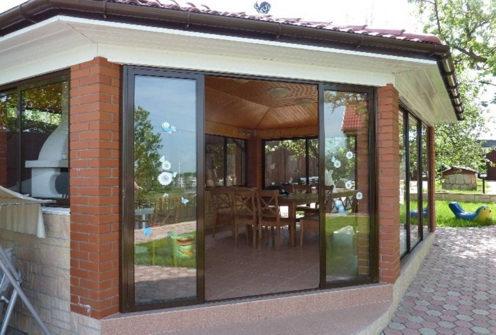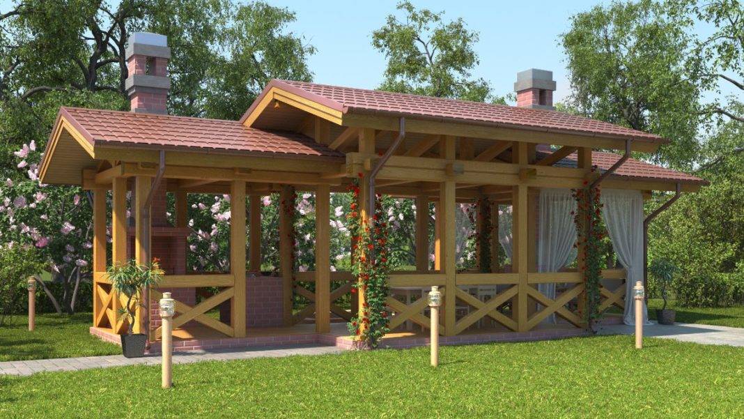 В них можно разместить широкие скамейки или диваны, длинные столы, некоторые хозяйственные принадлежности и построить печь для шашлыка.