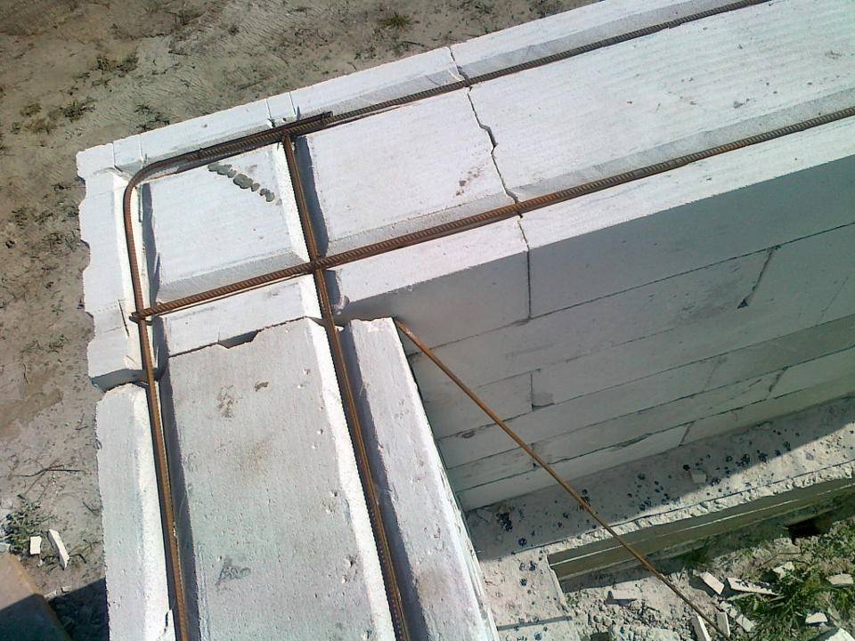 Каждый четвертый ряд кладки укрепляют армирующими прутьями, они обеспечивают большую прочность конструкции.