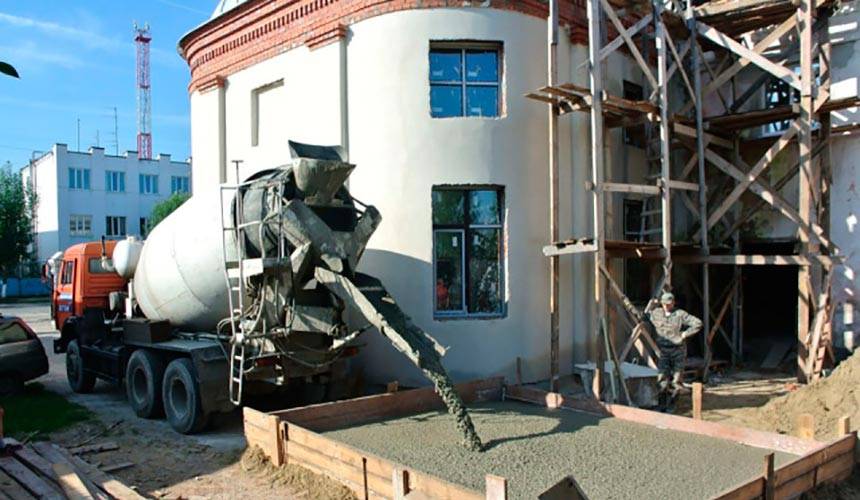 - возведения коробок частных зданий. Свойства бетонного раствора позволяют использовать его для заливки перекрытий и строительства капитальных стен;