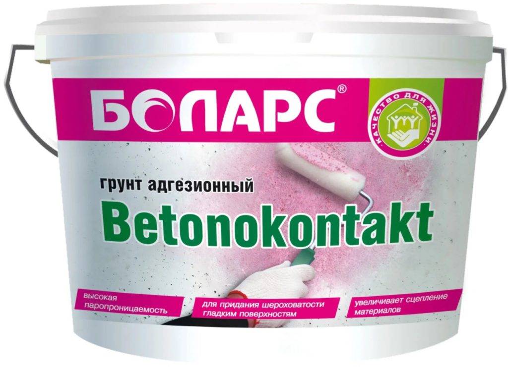 - «Бетоноконтакт» Боларс. Один из представителей акриловых грунтовок. Активно применяется для внутренних и наружных работ. Позволяет облицовывать помещения поверх старой плитки.