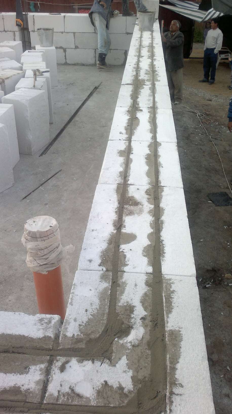 - Каждые 3-4 ряда необходимо армировать двумя металлическими прутьями диаметром 8 мм, для которых делаются специальные углубления.
