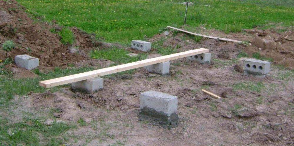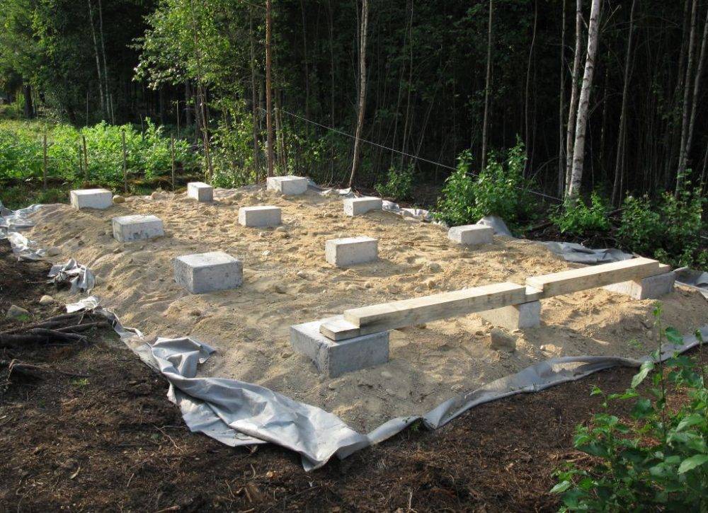Блок размерами 3х3 м можно ставить прямо на подготовленное основание. Можно просто утрамбовать земляную площадку, соорудить подпорки из пары кирпичей и на них установить строение. Этот вариант допускается в районах с сухим климатом.