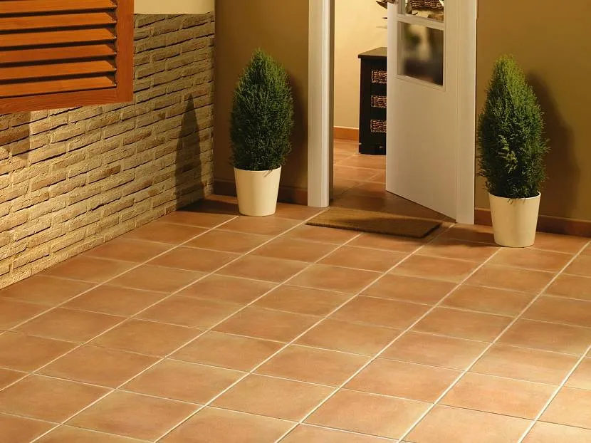 Светло-терракотовый пол в интерьере из кафельной плиткиИсточник archiproducts.com