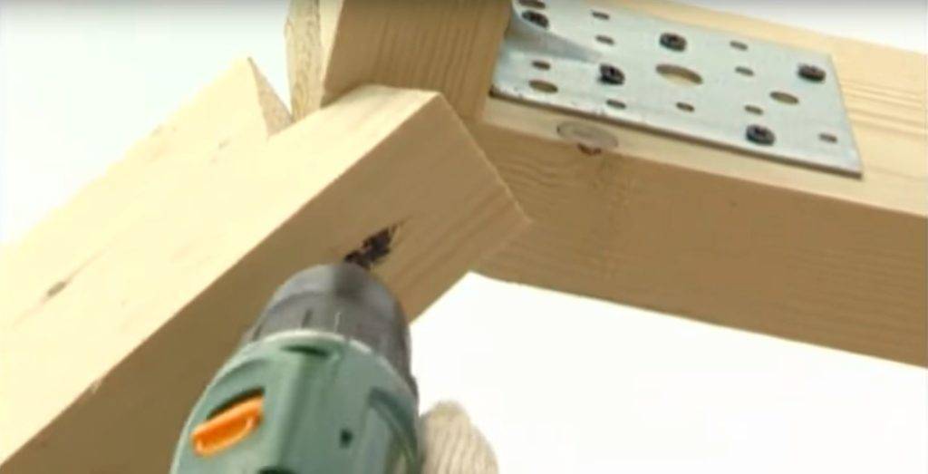 - установка подкосов, которые закрепляются на стропильной ноге и ригеле;