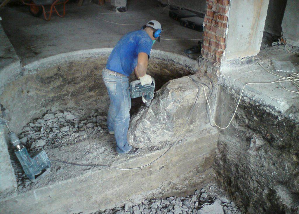 Вообще бетон используется в нескольких местах здания – это и стены, и фундамент и прочие опорные конструкции. Чтобы демонтировать основание сооружения, придется как следует потрудиться. Монолитную конструкцию стоит расколоть на несколько частей, после чего все их извлечь. Это сложная процедура, которая должна выполняться бригадой квалифицированных сотрудников. В отличие от других вариантов демонтажа, алмазную резку стоит использовать даже для создания отверстия в несущей стене. Отсутствие вибрации – основное преимущество такого алмазного сверления.