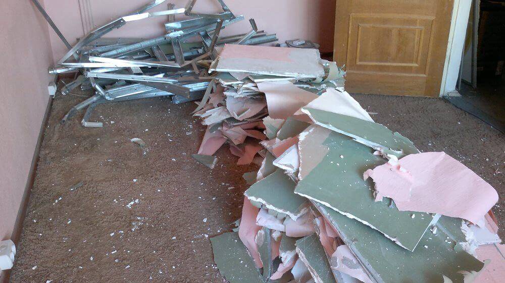 Если предполагается дальнейшее использование ГКЛ, необходимо найти место для их складирования. Листы довольно большие, и придется освободить удобный угол для них. При демонтаже без сохранения гипсокартон можно разрезать на небольшие куски. Но для строительного мусора место тоже понадобится.