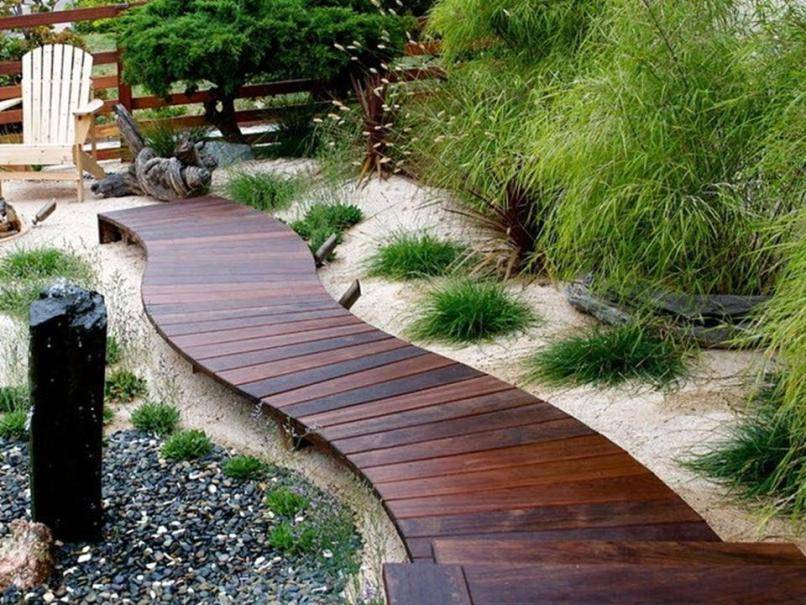 Деревянные садовые дорожки из досок или бруса на насыпи