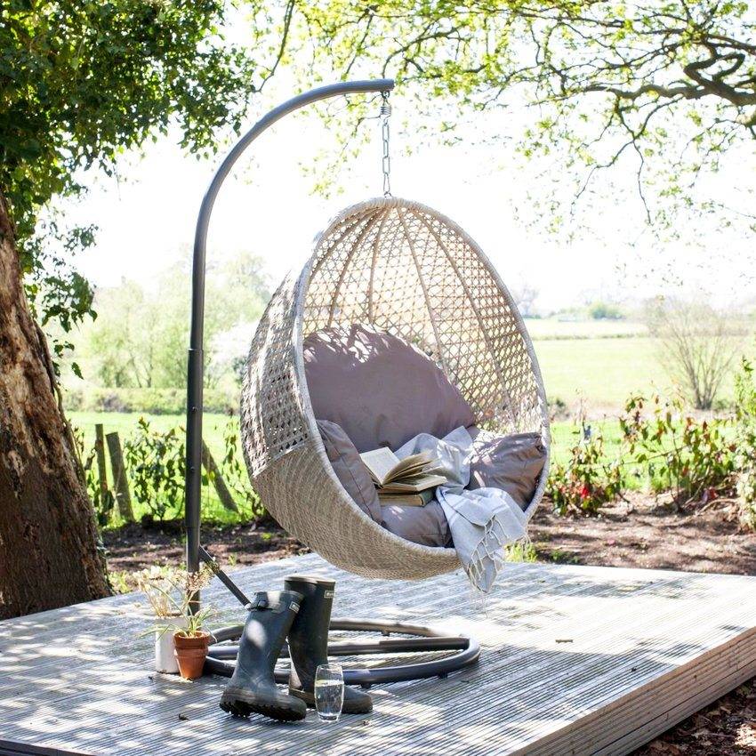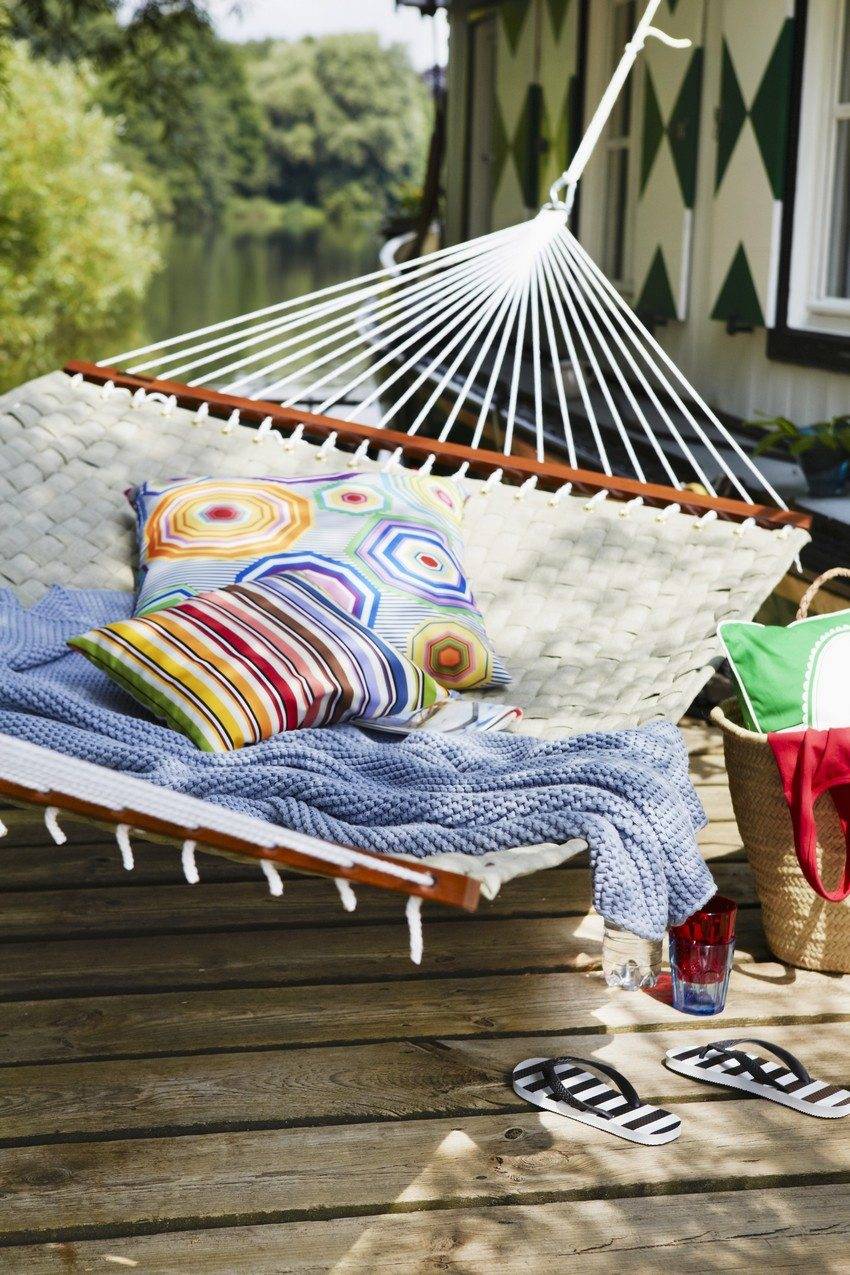 - Эстетичное оформление качелей нужно не только для красоты, но и для удобства катания. Уложенные на скамейке декоративные подушки, матрасик обеспечат комфорт.