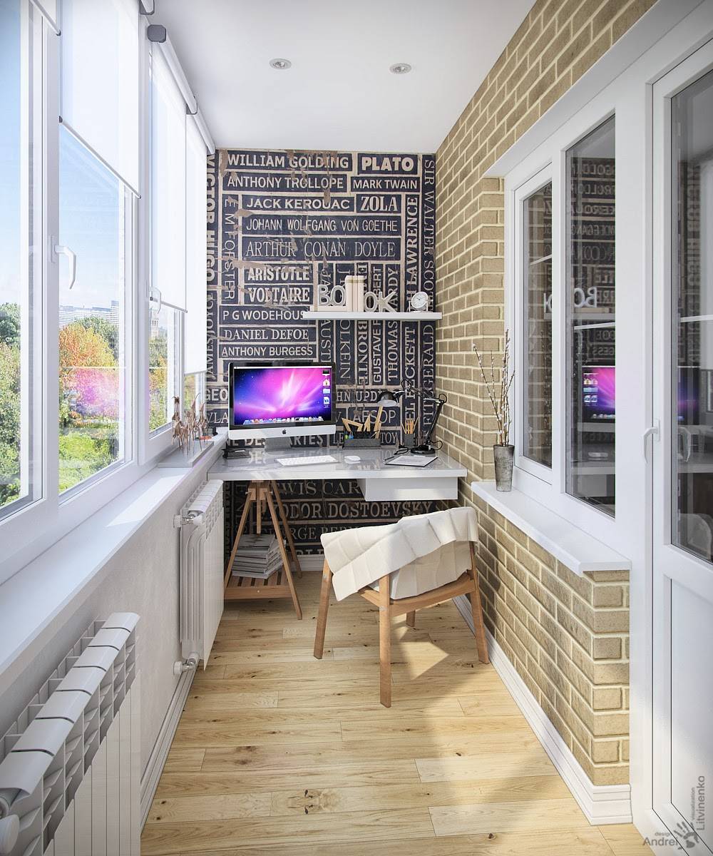 Они оборудуют на свободном пространстве рабочую зону с полками, столом и местом под компьютер. Так как остекление балкона обычно пропускает много света, то заниматься здесь будет комфортно.