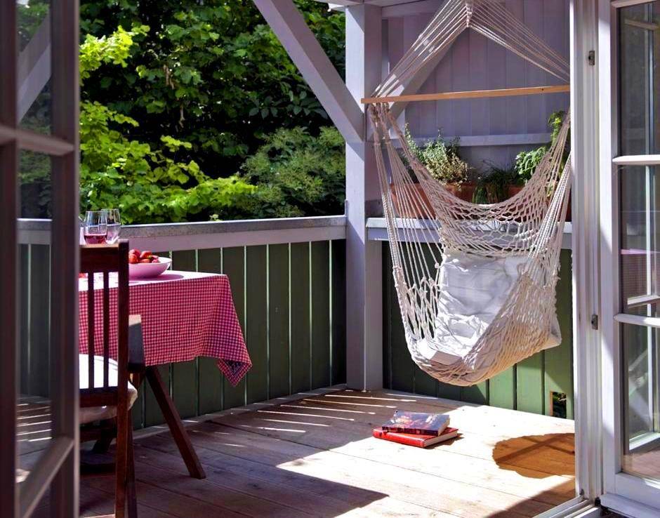 Кресло-качели на балконе наполнят интерьер особой атмосферой умиротворения и романтики