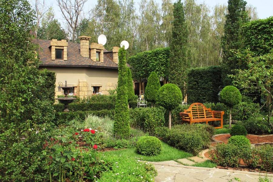 Еще один элемент гармоничного баланса — пропорции. В случае с дизайном сада на даче, это должны быть соотносимые размеры всех элементов на придомовой территории.
