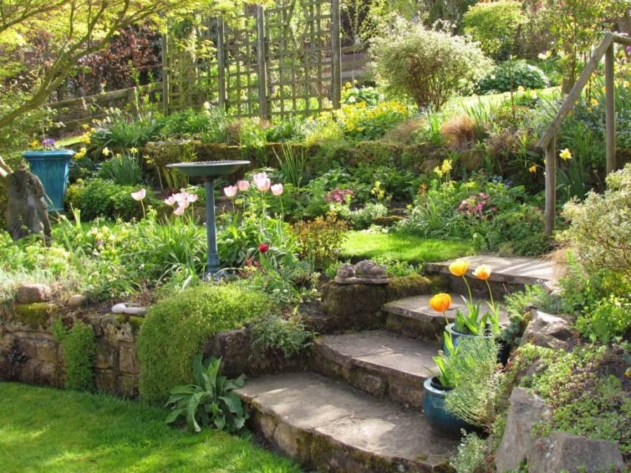 - Рокарий. Второе название — альпийская горка. Обязательный атрибут, кроме цветов — камни. Обычно выполняется в английском или японском стиле.