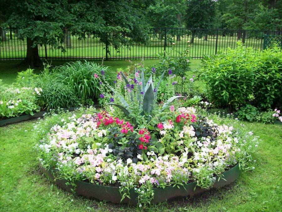 Тщательно рассчитывайте расстояние между деревьями и огородом. Если немножко прогадаете, пустоты можно будет заполнить кустарниками. Цветники могут быть разного вида: