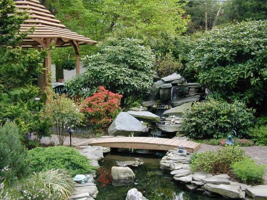 Здесь нет места прямым линиям, все сглажено и слегка асимметрично, кустарники, цветы и деревья производят впечатление самостоятельно выросших на наиболее эффектных местах. Они могут производить впечатление легчайшей небрежности, как будто хозяин собрался их подровнять, но отвлекся на более важные дела.