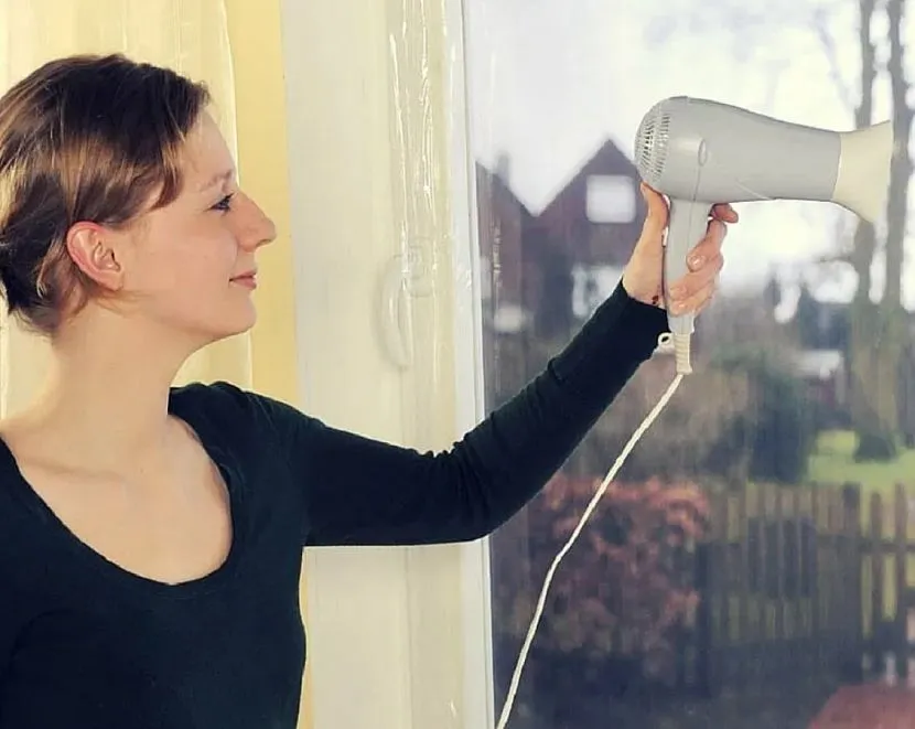 Снизить теплопотери в жилье можно заменой устаревших окон на новые модели. Эффективность однокамерных конструкций легко увеличить специальной термопленкой. Средство приклеивают на двусторонний скотч по периметру штапиков к стеклу, излишки убирают ножом. Бытовым феном греют поверхность, разглаживая неровности.