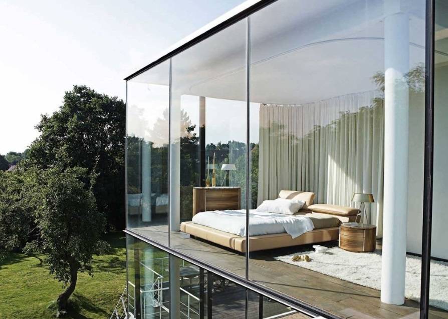 Если вы заинтересованы в сохранении всех свойств панорамной конструкции, но хотите обезопасить свою комнату от посторонних глаз, подобное стекло ответит всем вашим запросам. Обладая прекрасной светопропускной способностью, оно тем не менее не дает возможности «подсмотреть» за происходящим на балконе и в доме.