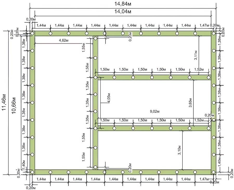 На этом этапе важно найти правильное расположение свай, просчитать их общее количество. Максимальное расстояние между единицами – 3 м