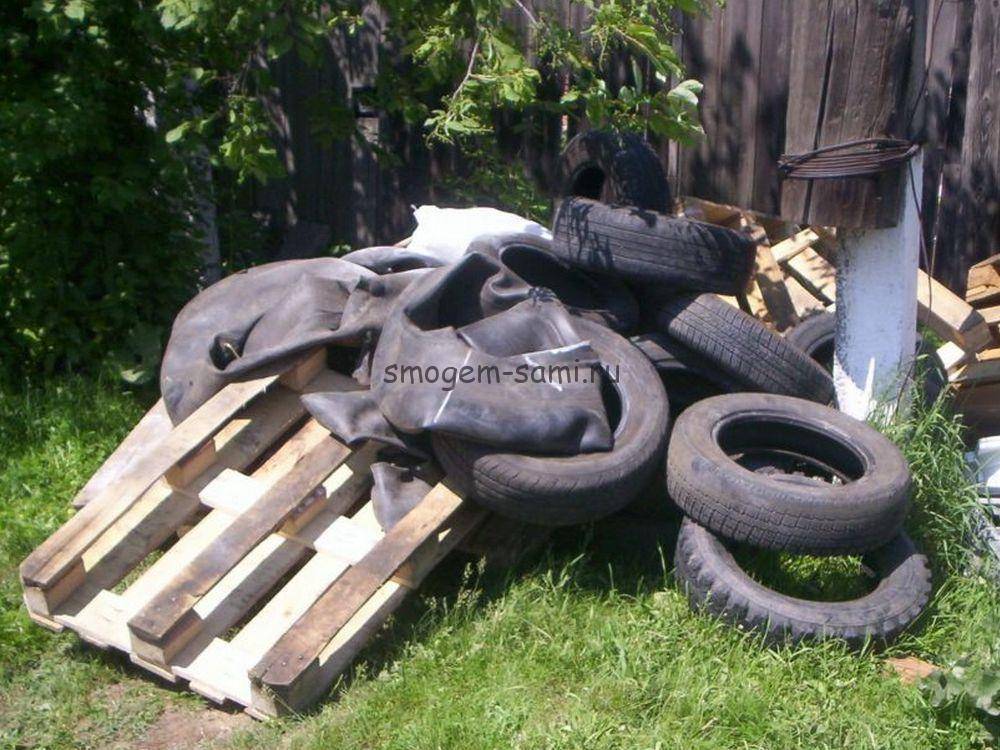 - Покрышки автомобильные, размер зависит от того какое строение будет возводиться. Я брал от грузовых автомобилей, Газ-66, Камаз, Газ-53, одна даже от лаптежника есть.