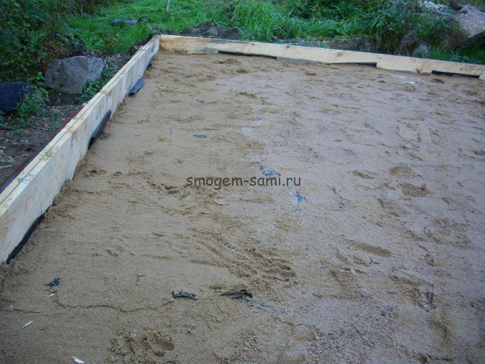 - с внутренней части оборудованного углубления установить опалубку и на дно выложить 15-20 см слой песчано-гравийной смеси;