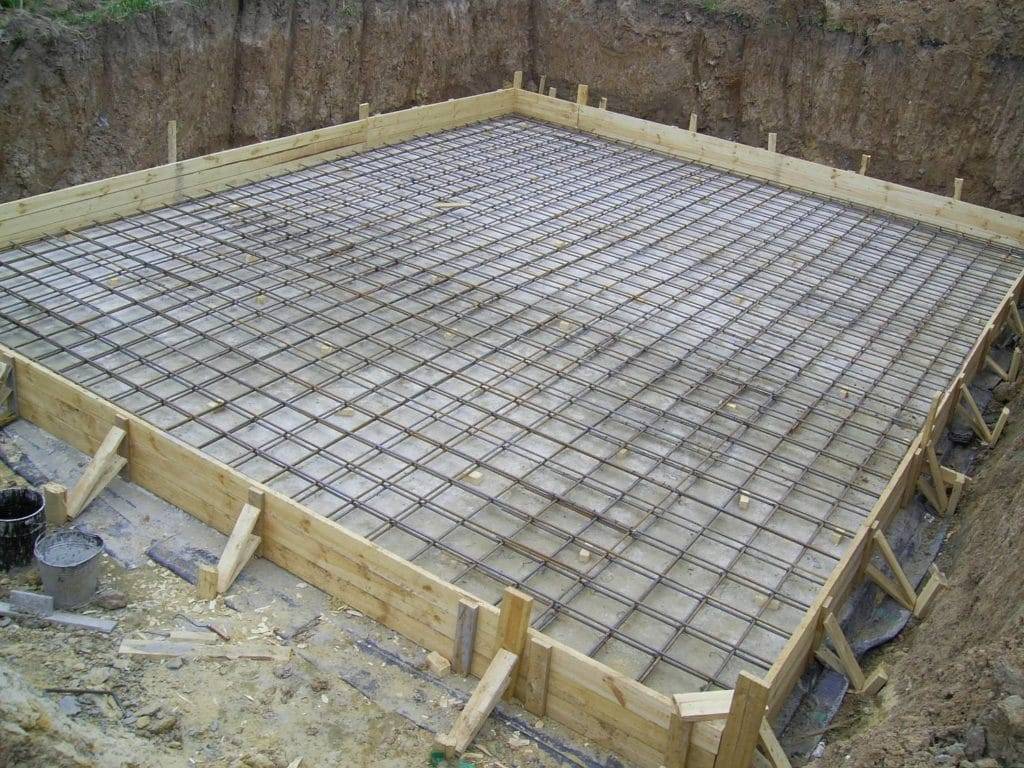 Также можно использовать уже готовую плиту. Заглубление плиты зависит от массы строения. Плиту укладывать на глину запрещено. Перед началом закладки выкапывается котлован, выполняется гравийная и песчаная засыпка.