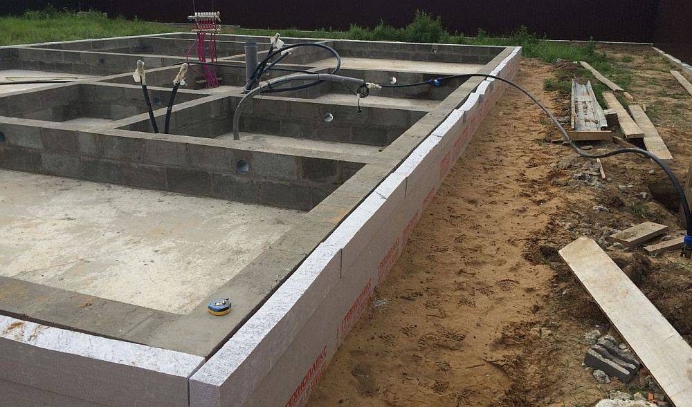 Фундамент с теплоизоляционным слоем под подошвой, интегрированными контурами теплого пола получил название «шведская» плита. Основным достоинством конструкции УШП является сокращение бюджета отделки. Владелец получает одновременно с фундаментом:
