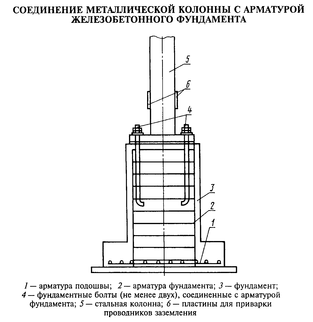 Соединение металлических колонн с арматурой железобетонного фундамента.