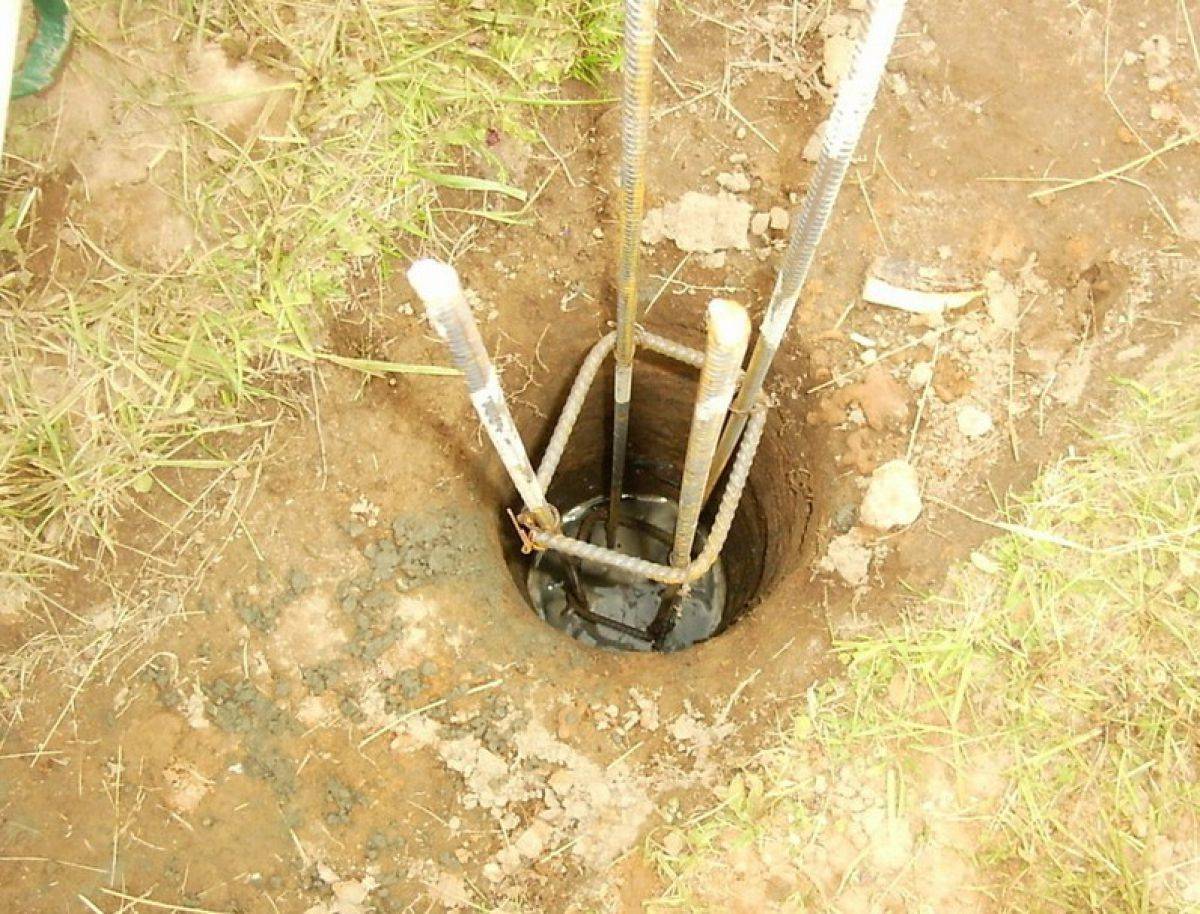Когда скважины должным образом пробурены и каждая из них имеет полусферическое углубление у основания, можно приступить к установке арматуры и заливке скважины бетонной смесью.