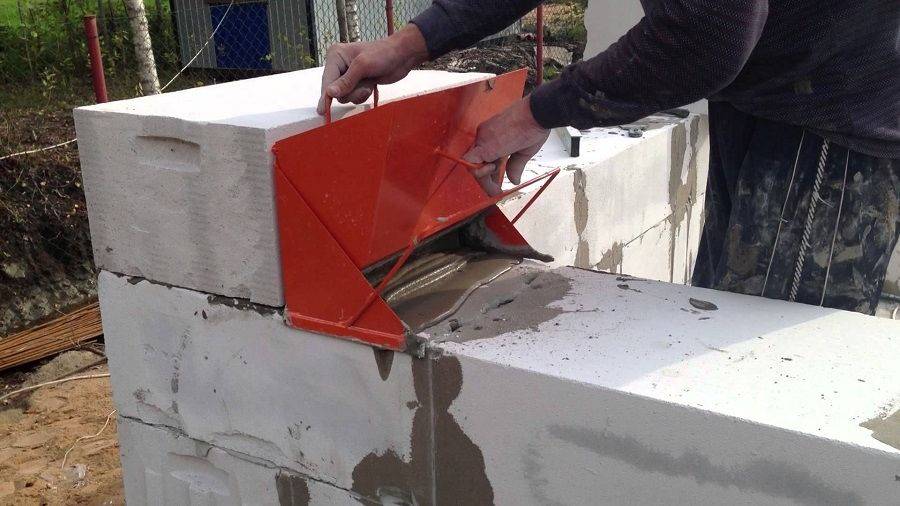 Ровная укладка автоклавных бетонных блоков выполняется с помощью строительного уровня