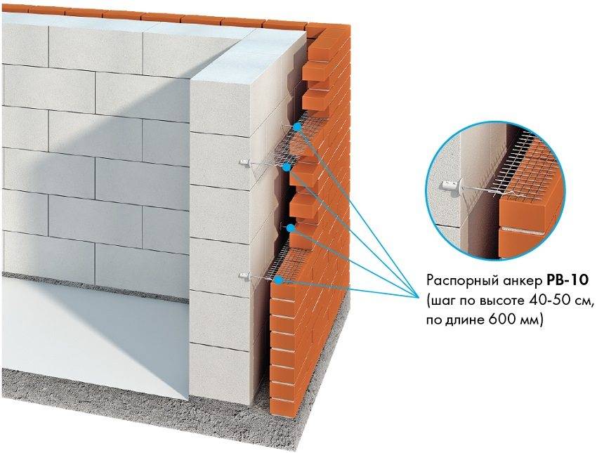 Вязка кирпичной облицовки и стенового заполнителя из блоков