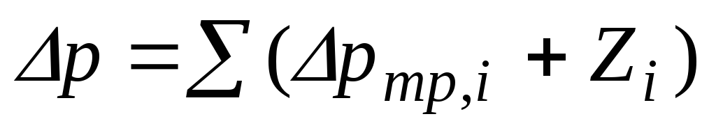 8. Определяются потери давления в местных сопротивлениях, используя или формулу: