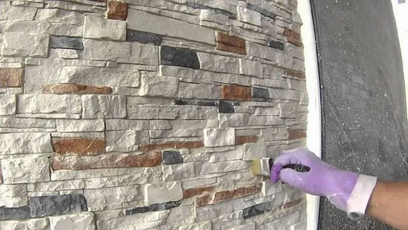 Не рекомендуется использовать цементные растворы, поскольку количество жидкости в них избыточно для гипсовых изделий. Целесообразно применять специальные составы для работы с этим материалом. Введенные в состав добавки и присадки стабилизируют смесь и не дают активно поглощать воду из клея. Менее подвержены впитыванию влаги плитки под камень. Многие производители используют акриловые связующие для их производства, значительно снижающие гигроскопичность продукции.