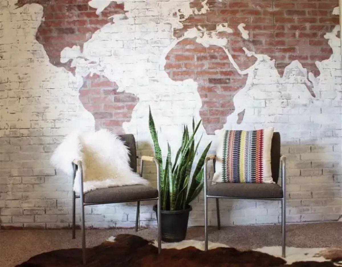 1. Первое и самое дешёвое средство — просто перекрасить стену. например небрежная или тщательная покраска красной стены в белый цвет создать из стиля Лофт или Кантри скандинавский стиль. При перекраске белого кирпича можно изменить восприятие использовав яркие цвета. Арт объекты по трафарету так же изменят весь вид стены.