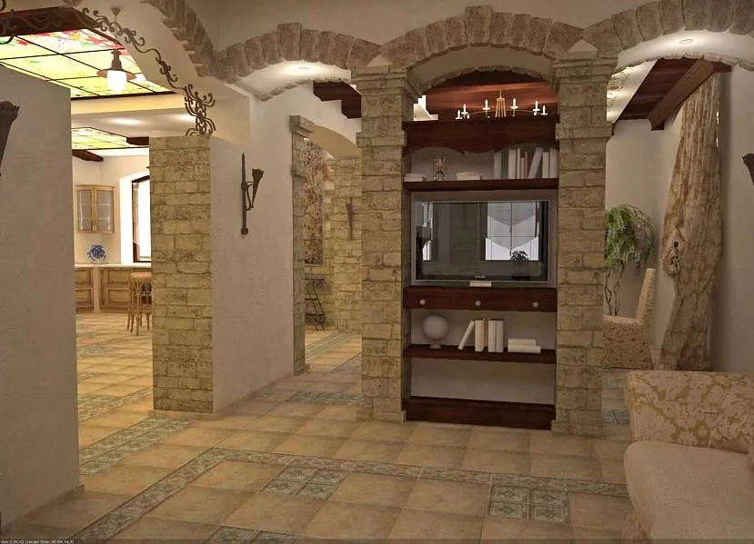 - Не стоит совмещать несколько текстур. Также не надо на стены, облицованные камнем вешать декорацию, такую как картины и полки.
