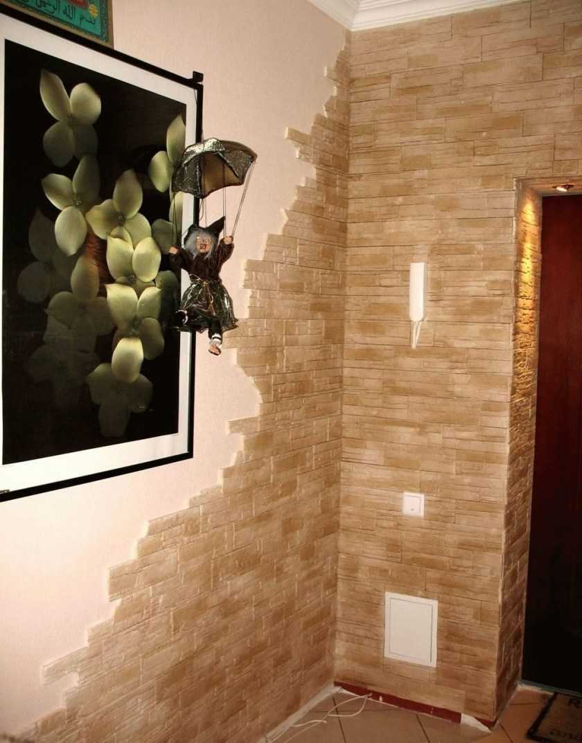 Искусственный камень в интерьере прихожей клеится снизу вверх