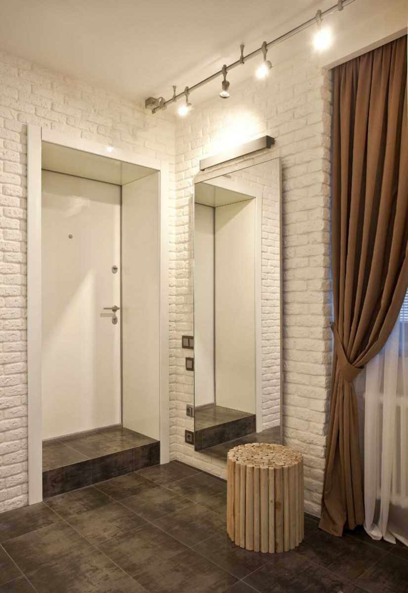 Классическая кирпичная кладка в современной прихожей дополнена зеркалами
