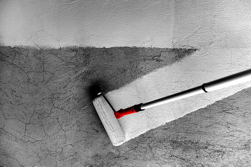 После высыхания первого слоя на поверхности бетона образуется шероховатое покрытие, называемое «апельсиновой коркой». Краску желательно наносить минимум в два слоя. Это позволит улучшить декоративные качества и защитные свойства покрытия. Второй слой наносится после того, как первый полностью просохнет. Для этого требуется около 8 ч. Не стоит делать слишком большой перерыв между слоями, пауза не должна длиться более 24 ч. При вторичном окрашивании валик рекомендуется перемещать в другом направлении, чтобы не осталось пробелов.