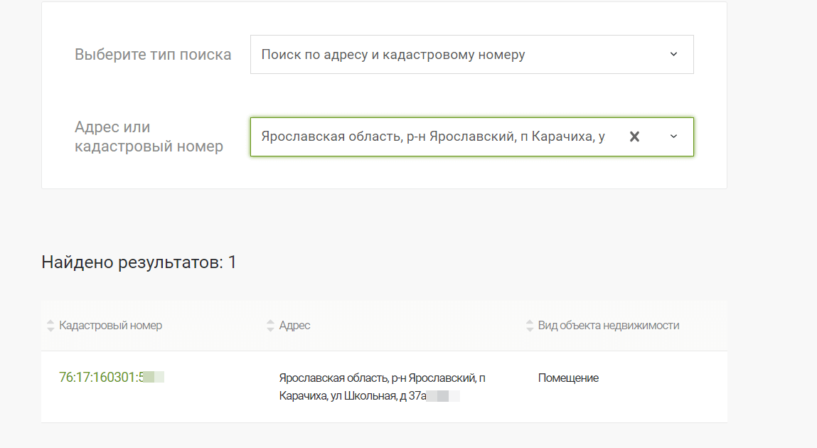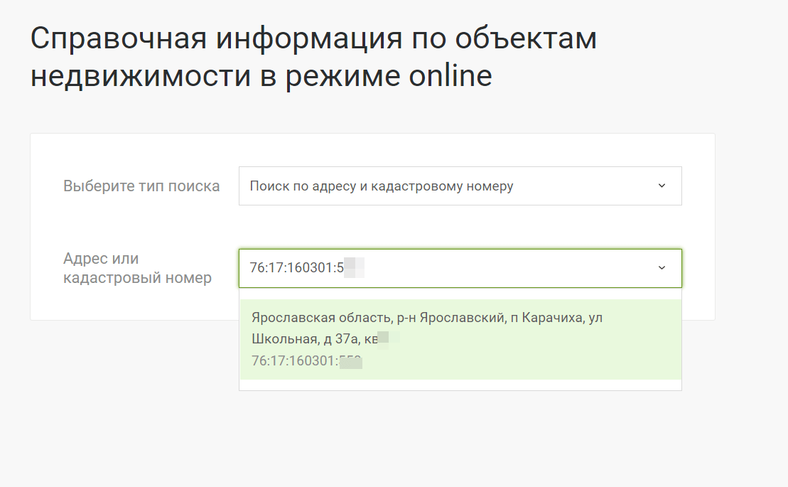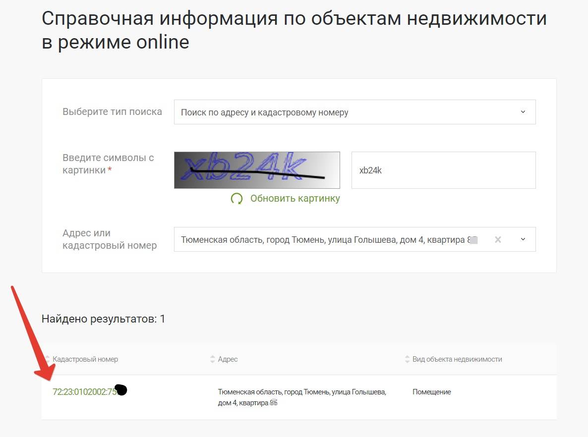 Если документов, из которых можно узнать кадастровый номер, под рукой нет, удобно пользоваться поиском по адресу. Но с одинаковым адресом может быть несколько объектов, поэтому нужный вам придется идентифицировать самостоятельно.
