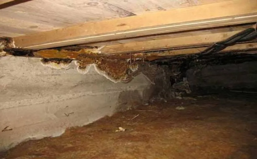 - нарушения правил или отсутствие гидроизоляции, отсыревание внутренней части конструкций и подполья в целом (особенно, когда дом стоит практически на грунте).
