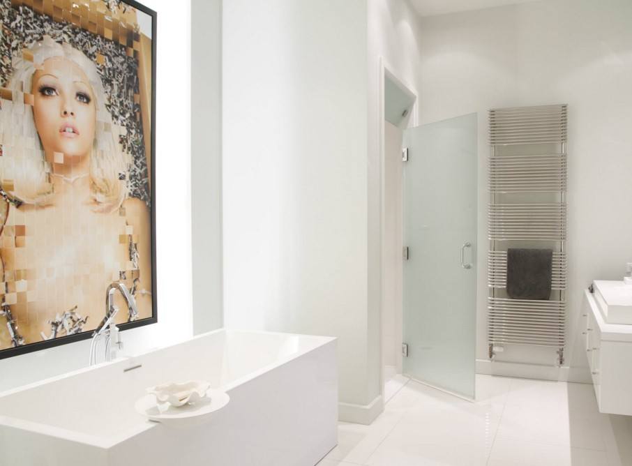 Полотенцесушитель в ванной (фото) имеет вид изогнутой трубы, встроенной в систему подачи горячей воды, где она постоянно циркулирует, сохраняя высокую температуру. Именно поэтому на этом неизменном элементе ванных комнат легко сушатся полотенца и не только. А в местах с суровыми зимами особо ценится еще и функция прогрева помещения. Кроме того, есть и техническая сторона вопроса: дизайн-радиатор – компенсирующая петля в системе горячего водоснабжения.