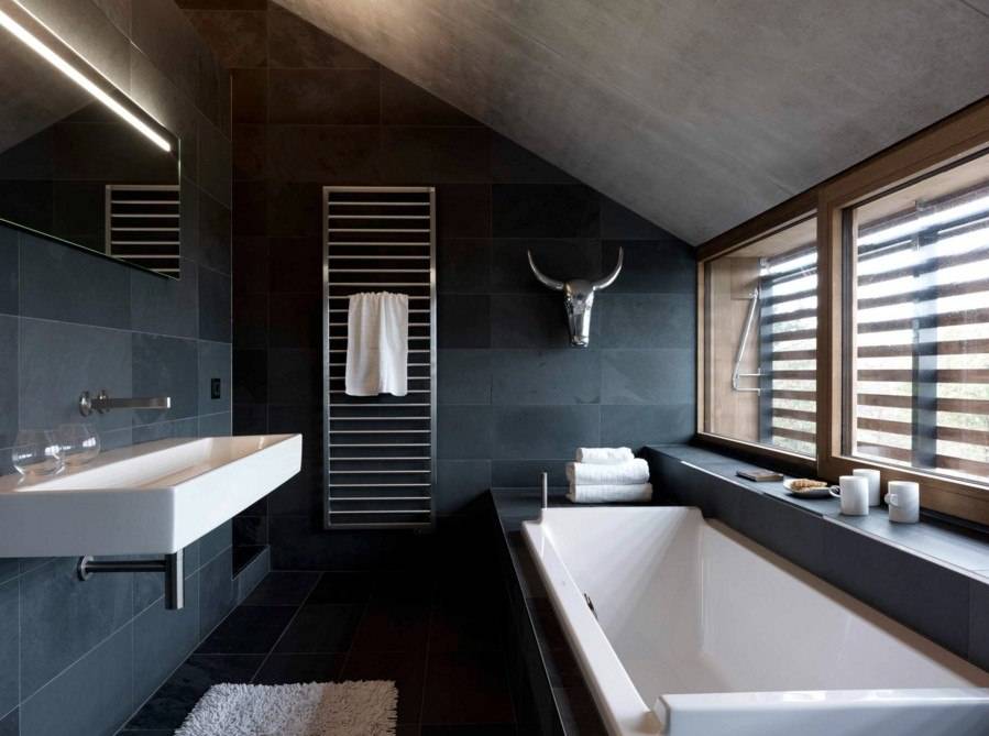 Черная сталь. Не такая износостойкая как первый вариант, но полотенцесушитель в интерьере ванной комнаты из этого материала может исправно работать до 10 лет;