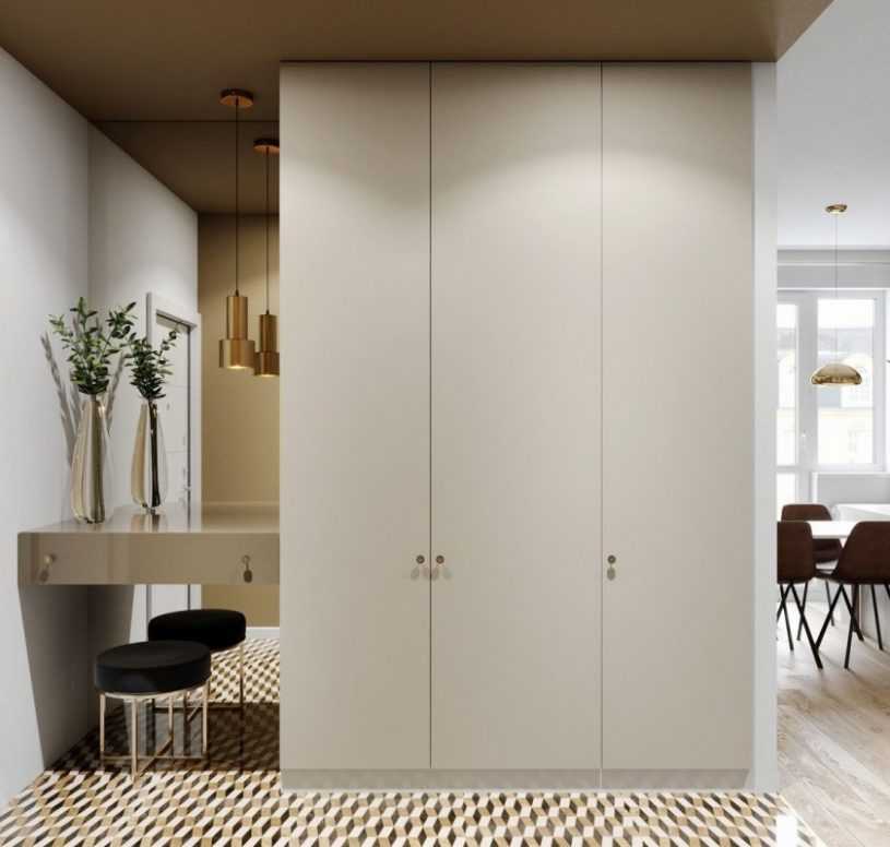 Совет! В квартирах-студиях шкаф-купе может выполнять роль перегородки между прихожей и гостиной.