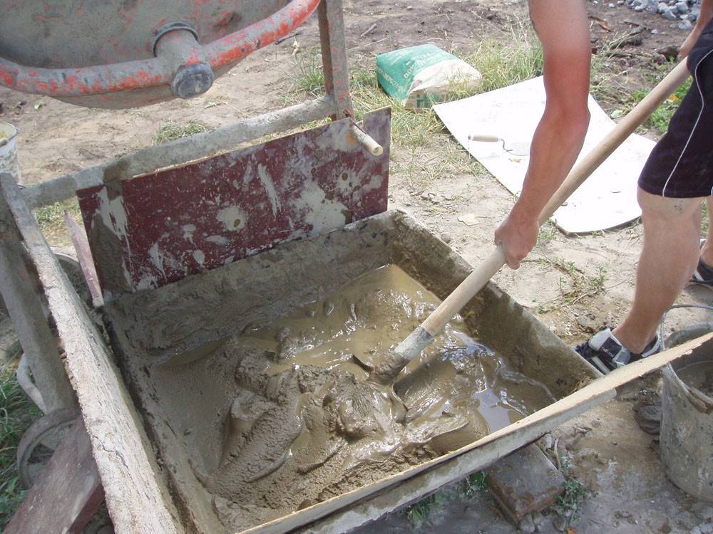 Когда все составляющие для рабочей массы подготовлены, можно начинать замешивать цемент. Для этого можно воспользоваться бетономешалкой, но если такого приспособления не имеется, работы осуществляются и вручную.