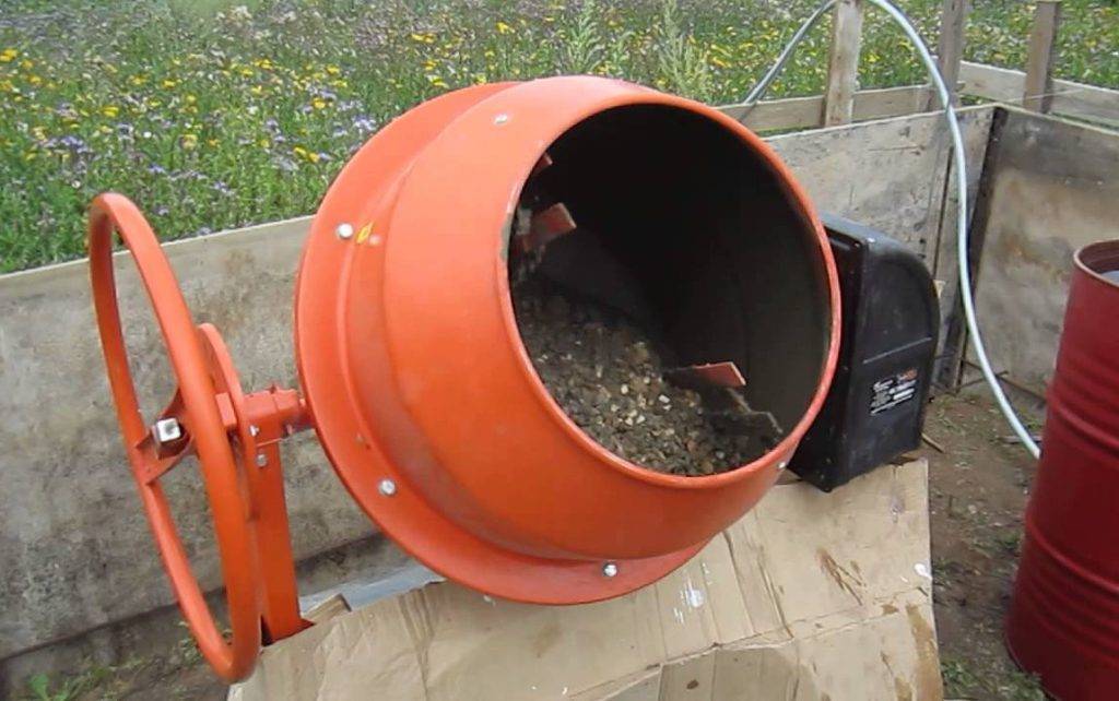 - После использования нужно промыть стенки бетономешалки. Для этого нужно взять 5-7 л чистой воды и немного песка. Слитую воду с мелким наполнителем можно применять для приготовления следующей партии бетона.