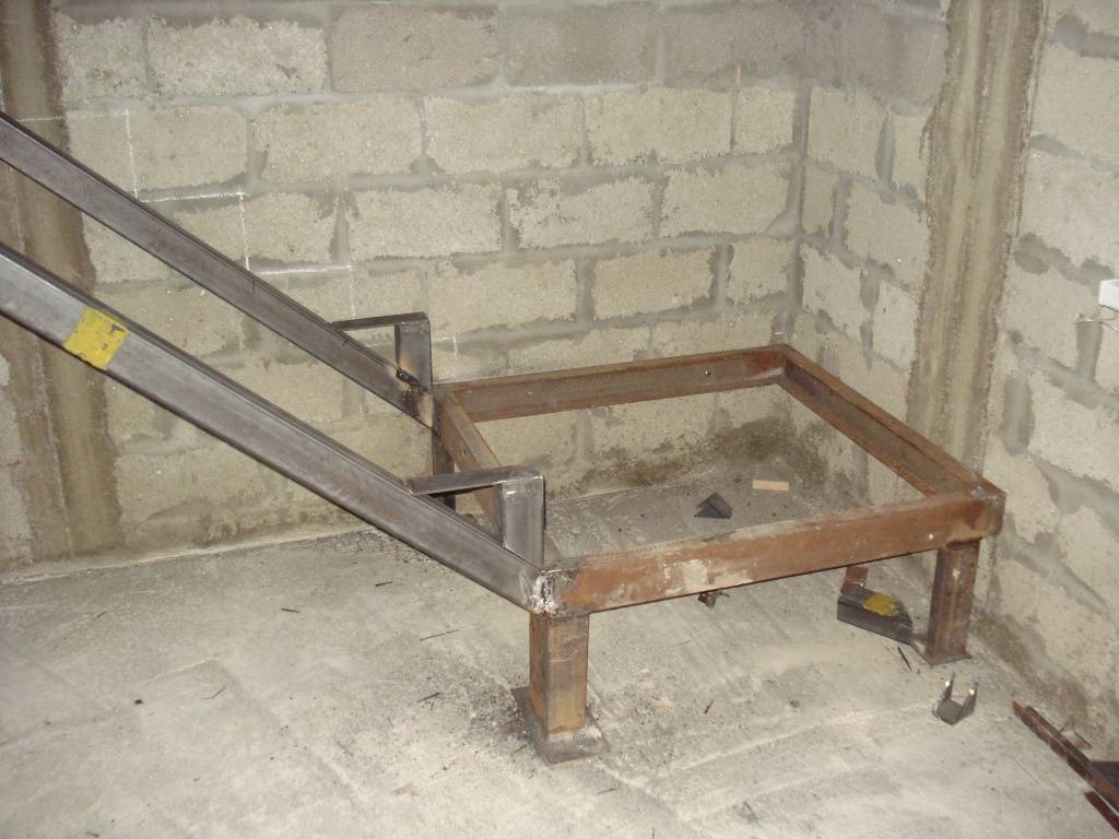 Последние привариваются к опорному столбу в виде прямых пластин. Также можно приварить между собой три металлических профиля, впоследствии должна получиться своеобразная подставка для ступени.
