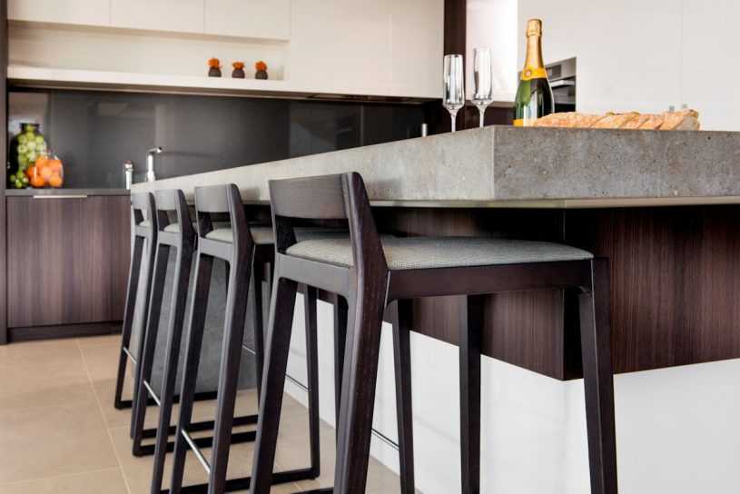 Минимализм в кухонном помещении стремится к простоте и лаконичности. Барные стулья строгой конструкции без излишнего декора, простые, но функциональные, будут выглядеть уместно.